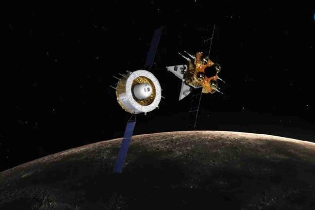 而轨道舱和返回舱一起在月球轨道上,围绕月球运行。