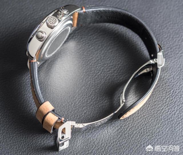 本作的测速计表圈与旋入式按钮带来了一种Daytona 的即视感。Tudor 的Heritage Black Bay Chrono 和Rolex 的Daytona 上都有显眼的「UNIT PER HOUR」字样以及「100」之后的不均匀刻度。没办法,很多人都不太熟悉Tudor 在1970 年代推出的计时腕表,所以本作的表圈看起来有点像是源于Daytona 一样(不看尺寸的话)。但本作不设表冠护肩,并且在6 时位饰有米数前置的红色文字,这些还是与Daytona 有所区别的 不过,这并不意味着它们能与Black Bay 此次的计时设计很好地融合。