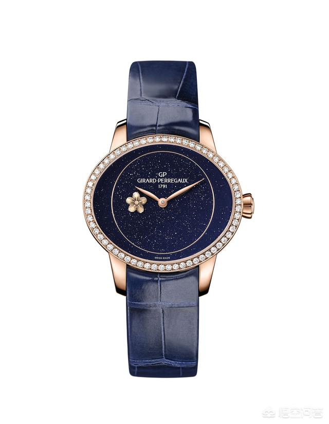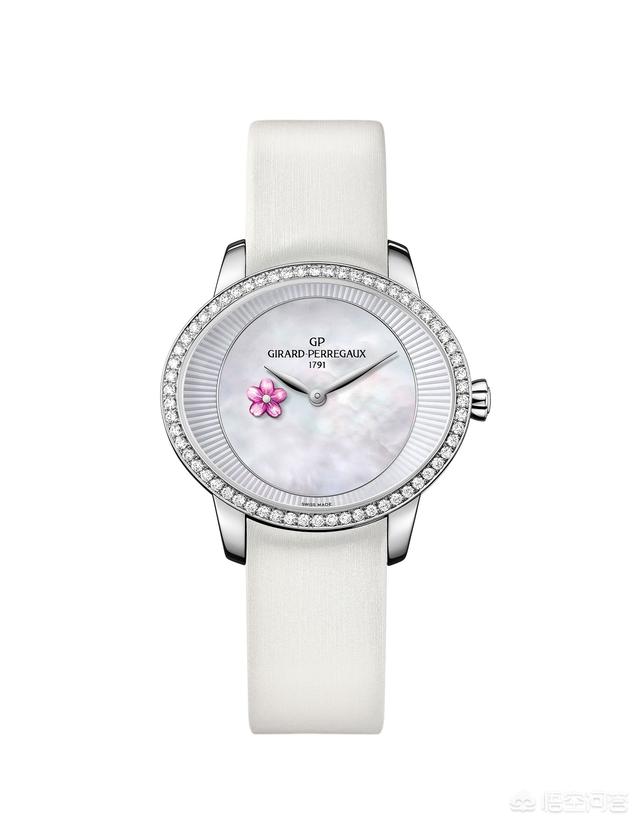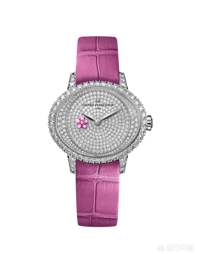 GP芝柏表2019年的女表是Cat’s Eye 猫眼腕表,钢壳珍珠母贝盘面,18K玫瑰金砂金石盘面,18K白金满钻镶嵌盘面(表盘18K白金),中文名字叫“春梅”系列腕表。表盘上的梅花是旋转的小秒针。很漂亮。