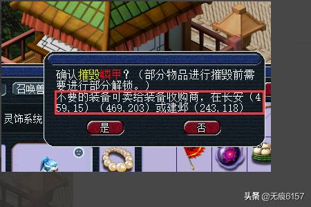 梦幻西游当中,装备很容易就会撑满背包,这时候就需要出售背包中不重要的道具,具体方法如下: 1、打开背包,找到需要出售的装备,鼠标左键点击选中。 2、可见提示说明可以出售。 3、来到提示的坐标位置。 4、找到装备收购商。 5、对话,点击出售。 6、这时候就可以卖出,而且会显示卖出后的价格,但是要注意不要出售未鉴定的装备。 |