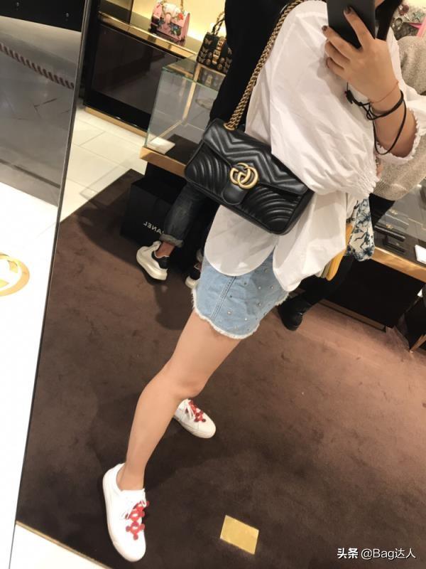 今天我推荐的这一款是古驰G家marmont系列的包包。这个款包包有三个尺寸,需要注意的事26cm的包包不适合娇小的女生背,身高要170+。 22cm和mini的你都非常适合娇小的女生背,也适合斜挎。