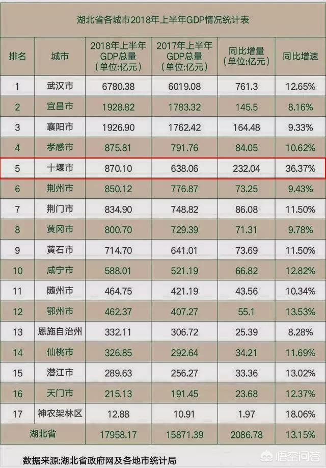 而十堰自2017年成为湖北省增速榜的冠军后,在2018年上半年GDP超过荆门、黄冈、荆州三座城市,由去年全省第八的座次上升至目前全省第五。就实际情况而言,十堰的超常发挥已经刷新了湖北城市格局。在2018年终经济会考时,十堰有可能再次超越排名在该市前面的孝感,成为湖北省毫无争议的“第四城”!
