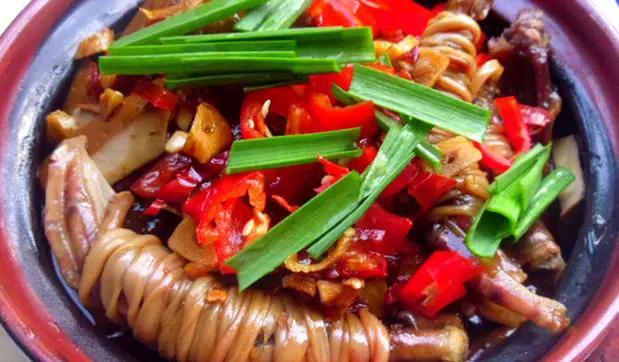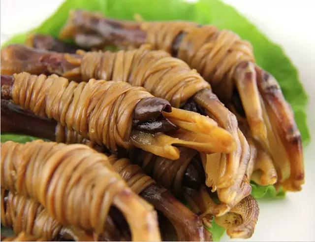 跟腊肠、腊肉一样,鸭脚包也是腊味的一种,是东莞洪梅镇一款地道而传统的民间美食。所谓的鸭脚包,就是采用了特殊腌制的鸭脚,然后在每个鸭脚中间裹以鸭心、鸭肝、鸭肾、肥猪肉等,再用一段长长的、透明的鸭肠一圈一圈地把各种材料缠绕而成。可别小看这小小的一只鸭脚包,它的做法可不少,既可以清蒸,又可以用来焖萝卜,还可以用来煲腊味饭或者直接当作下酒菜来吃,每年秋冬季节都有不少“吃货”慕名前往洪梅镇品尝。