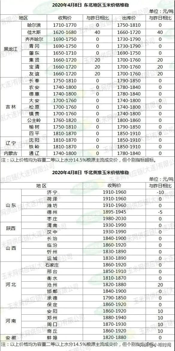 近期国内玉米价格的势头较为明显,从某种程度上来说,似乎迎来普涨行情,4月10日国家粮食和物资储备局发出了主粮收购的价格周报,统计时间为4月6日,东北、华北、西北等地的玉米价格均出现上涨,环比上涨0.2-2.9%;平均收购价为0.94元/公斤,环比上涨3.6%。其中,四川、山东等地玉米价格均站上1元/斤,环比分别上涨0.5%和2.7%。4月14日,吉林部分地区玉米收购价上调10-20元/吨,华北黄淮地区玉米价格较为平稳,南方销区玉米价格0.99-1.08元/斤。