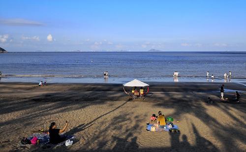 黑沙海滩长约1350米,是澳门地区最大的天然海滩,来这里以本地人居多,大部分都是私家车停在海边上,专门乘坐公交来这里看海的好像不多,这里的沙子是黑色的,风干的沙子是金黄色的,初看会觉得很脏,据澳门本地居民说,这是自然形成的,从开始到现在都是这样的,这下可以放心地和海洋亲密接触了。