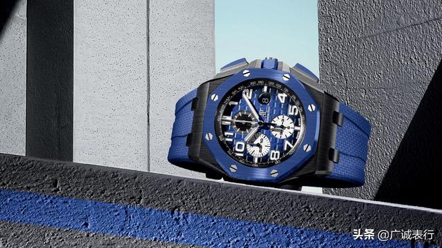 年轻时髦一些的可以考虑,爱彼皇家橡树离岸型系列26405CE.OO.A030CA.01,皇家橡树离岸型自动上链计时码表采用烟熏蓝色“Méga Tapisserie”超大型格纹装饰表盘,搭配阿拉伯数字时标,表壳以黑、蓝双色陶瓷制成,蓝色纹理橡胶表带彰显出休闲风格。黑色陶瓷表壳,搭配防眩光处理蓝宝石水晶玻璃表镜和表底,蓝色陶瓷表圈、按钮和旋入式表冠,钛金属按钮护桥。