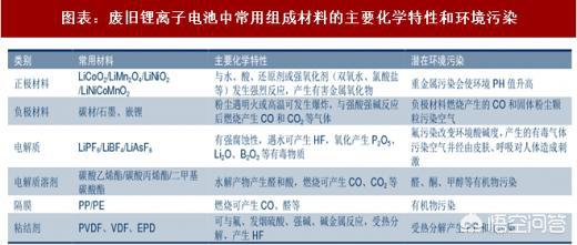 图表:废旧锂离子电池中常用组成材料的主要化学特性和环境污染