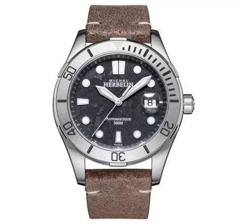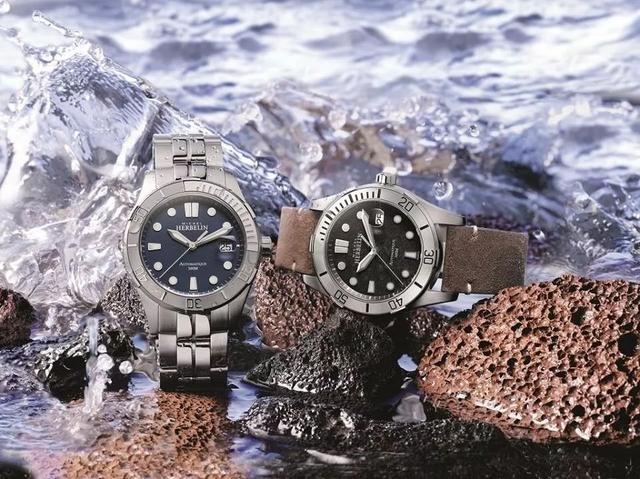 赫柏林这款表有航海风的感觉,表盘采用电镀喷漆工艺,将金属铜喷在表盘上,层次分明,营造出了一种陆地石面的效果。