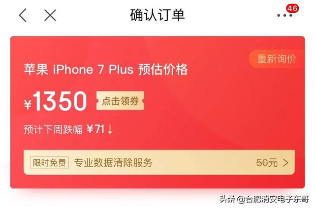 ﹌﹌下面我们以苹果iPhone7plus为例,其它选项暂且都选最好,当我们选择维修过电池时,估价如下图: