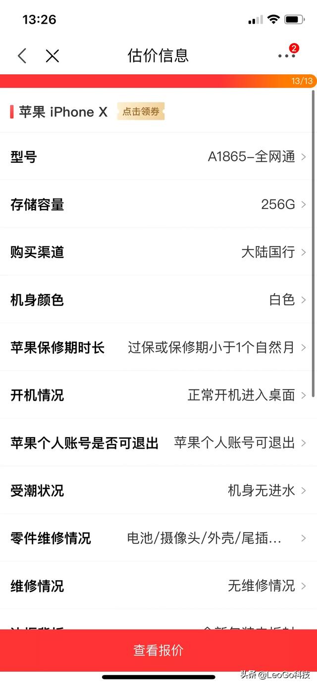 而当我们选择无维修情况时,也就是说没换过电池。此估价如下图: