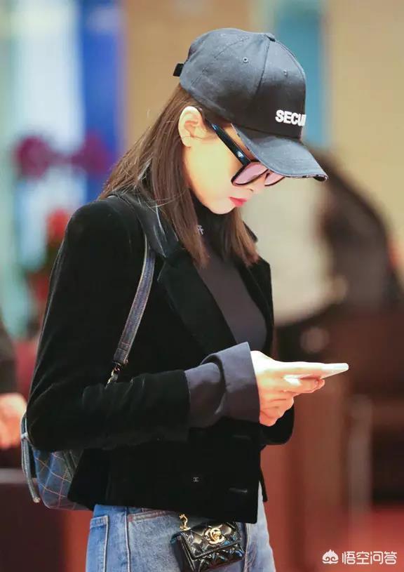 唐嫣的机场照也是走的酷酷的路线,和娜扎一样选择了鸭舌帽,但是衣着的黑白配色就相应的用红色帽子提高look的视觉感。唐嫣一向走的都是小鸟依人的路子,所以她在coolcool的look中选择了一个Roger Vivier迷你烟盒包来博得关注和打造自己的小巧感,也是很心机很新颖了