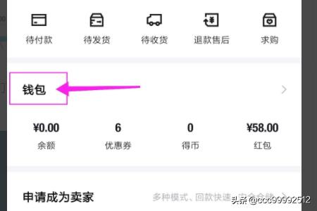 2、进入到得物的钱包页面,点击第一项“余额”。