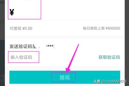 4、接着便进入到提现页面,输入提现的金额,获取验证码后,点击“提现”。