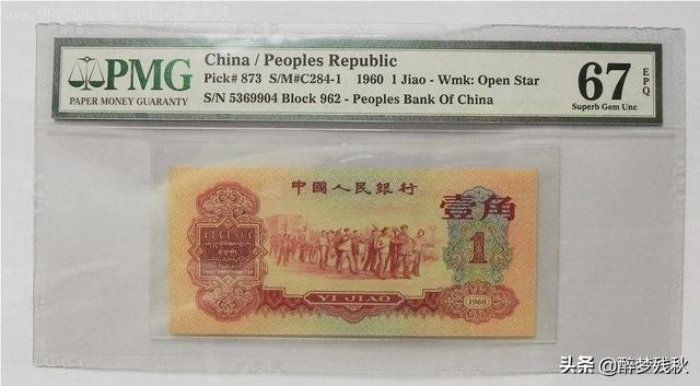 有趣的是,第三套1960版枣红一角和第二套黄五元是在同一天开始发行的,但它们却分属两套不同的人民币流通纸币。1960版枣红一角作为收藏价值和市场价格仅此于1962版背绿水印一角的第三套流通纸币品种,目前市场热度还是不错的。