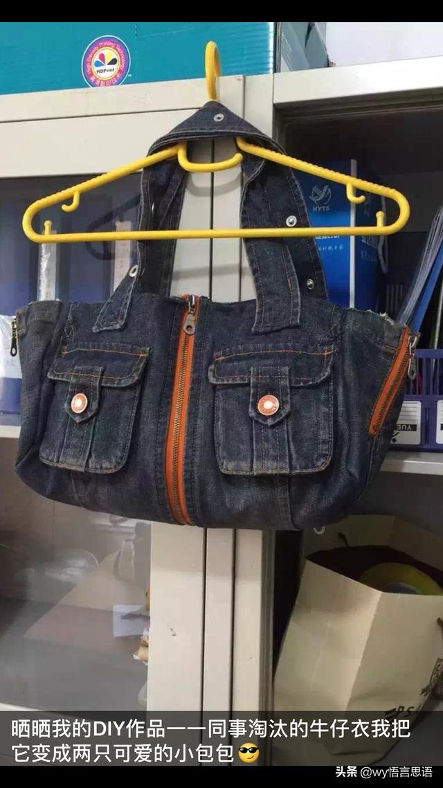 这是我单位同事淘汰的两件牛仔服,我做了两个包包,全是手工缝制,由于平时喜欢做手工,经常有一些旧物改造,这就要根据原材料进行设计,重新赋予它新的生命,我也从中得到快乐。