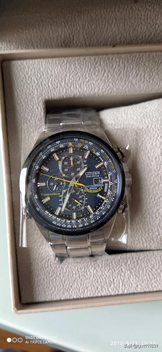 西铁城蓝天1代!万年历,星期,时间自动对波!省心! |