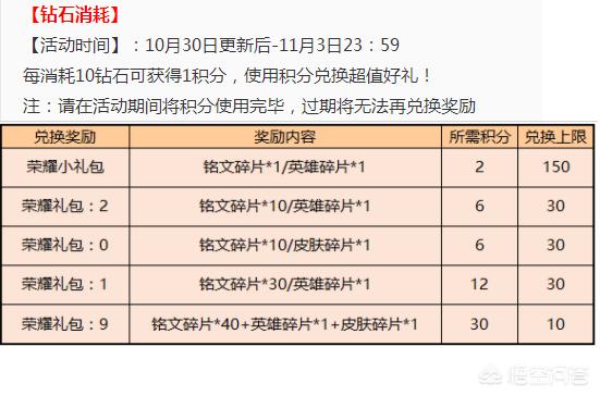 “钻石消耗”活动时间以及奖励本次钻石消耗活动从10月30日更新之后到11月3日结束,每消耗10钻石就可以获取1积分,需要兑换全部奖励的话就需要1320积分,换算成钻石就需要一万三千钻石,所以小伙伴们还是要攒好钻石,千万不要提前浪费了。