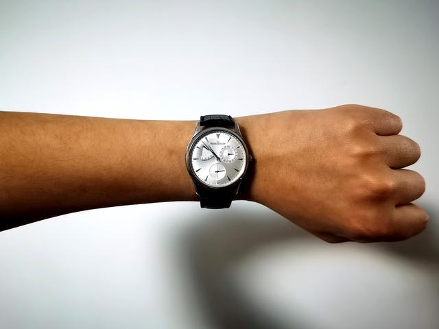 我属于偏清瘦类型的男生,手腕较细,正常佩戴39mm的腕表会显得有些偏大。但好在积家小丑腕表的表耳非常小,加上鳄皮表带与针扣的陪衬显得非常斯文,就算瘦小如我,佩戴起来也毫不突兀。