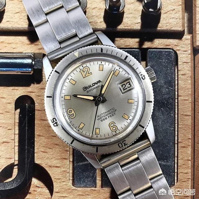 在以前,Bulova制作过一些极具吸引力的潜水表和计时码表,这些手表的价格也并不会令人望而却步。这其中就包括Snorkel:一个安装在体积相当于35毫米表壳内的,能达到666英尺潜水深度的额定潜水表,表盘上为了那些会潜入深海的人配置了充足的发光材料。这是一款相当罕见的产品,因为旋转表圈上的图案是来自工厂,且在银色的表盘上出现了“Snorkel”的字样。该设置很早就出现在这个特定模型的制作中,就算在未抛光的条件下你依然无法否认它的魅力。