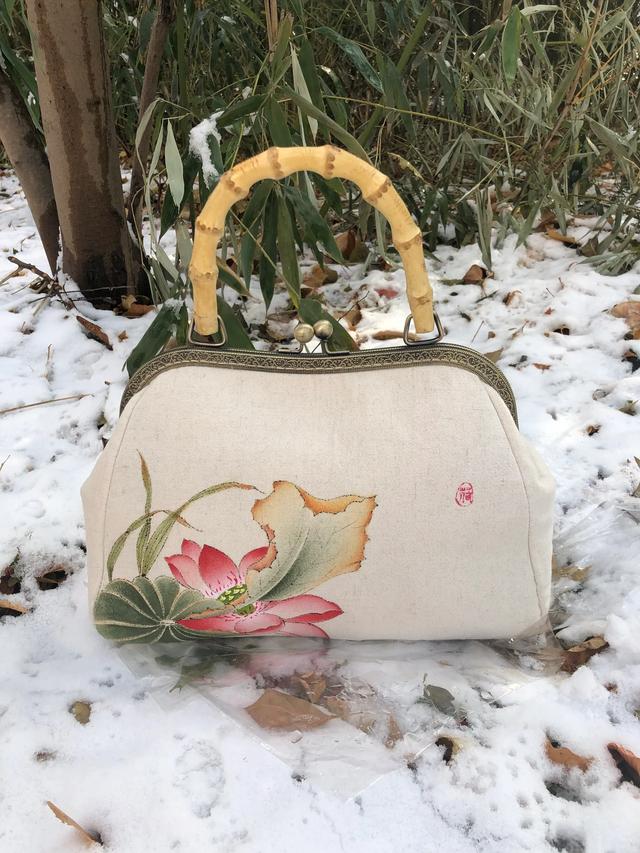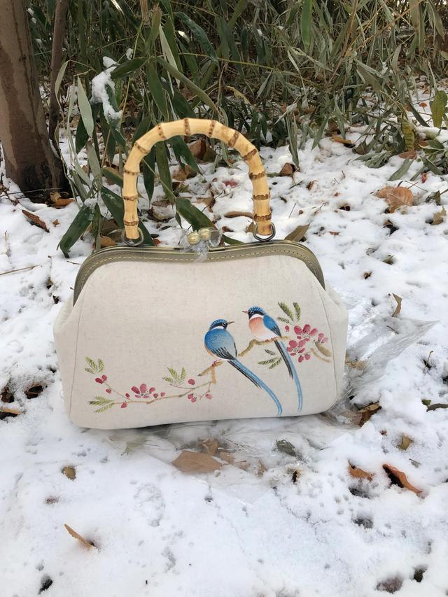 倒数图一和二就是帆布制成的。其他的就是手绘的棉麻布包。会比较细腻有质感。