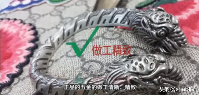 3、真品Gucci做工非常精细,观察线的收尾是不是干净、内层的皮革折叠处或切割线是不是平整,仔细比较就能让假货无处遁形。