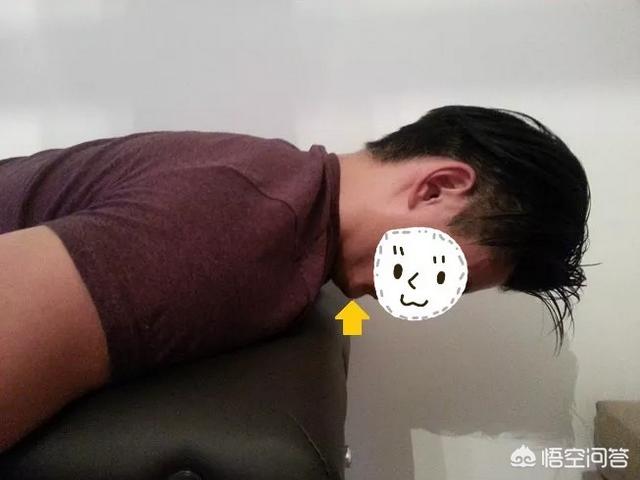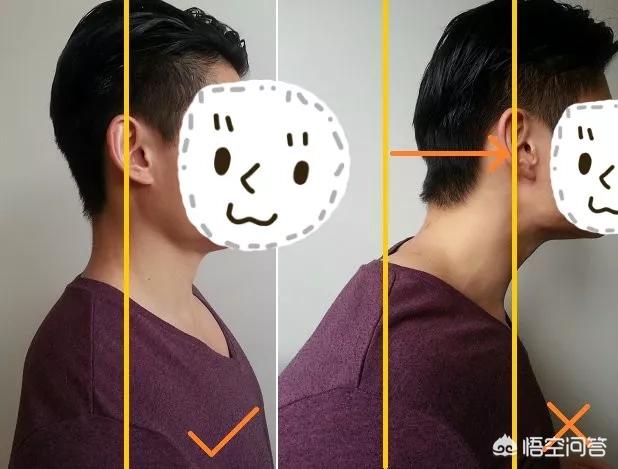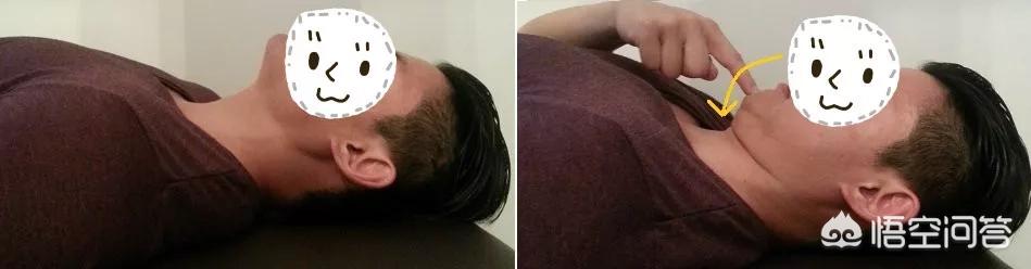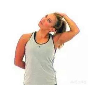 用食指轻轻的推下巴,使头部向后并且保持目视前方。可以对照镜子,让肩关节和耳朵在一条直线上即可。保持1分钟放松,每次8到10组。