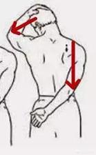 做法:右手臂抬高,尽量向上延展,弯曲右小臂向下。左手和右手在背后互抓。停留三到五组呼吸后反方向。