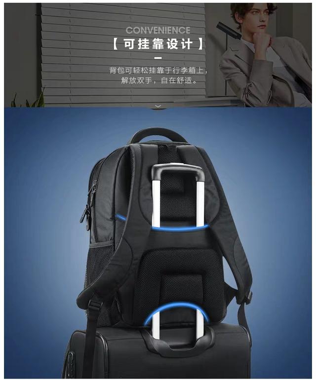 商务背包的款式还挺多的,基本箱包牌子都有商务背包款吧,我推荐一个比较厉害的,DELSEY的QUARTERBACK PREMIUM背包,非常商务,功能强大。容量大不说,还分了很多隔层,如果是喜欢整洁的商务人士,用这款就会很满意,东西都收纳得整整齐齐,而且装电脑的那层用了专业的电脑防护隔层。肩带柔软而且比较宽,增加受力面积,为双肩减负。肩带和提手都缝合得很牢固,不容易脱线。紧贴背部的地方采用了蜂窝网格设计,让背部保持空气流通,不容易闷汗。重点是,这个背包还有外置的USB接口,充电方便,不会在外面露出充电线。一共有四种尺寸,可以根据自己的身高和需要选择最合适的尺寸。另外DELSEY这款背包还有一个带拉杆和滚轮的款式可选,那款只有一个尺寸。都是10年质保哦,题主感兴趣的话可以自己去看看。 |