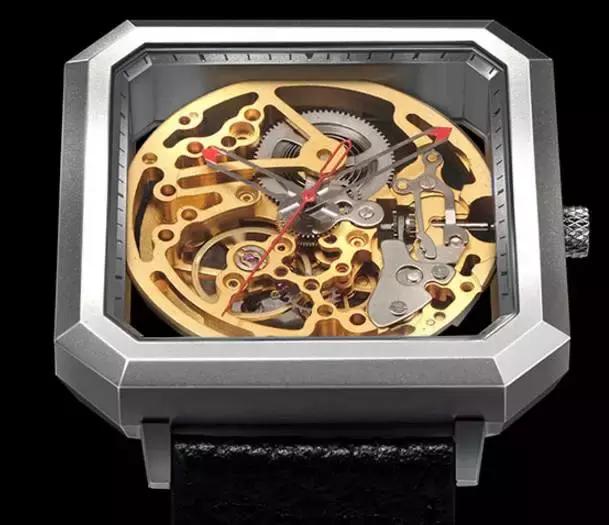 这样一个崭新有活力的公司设计出来的表款同样极富创造性:这款极致镂空机械腕表采用方形表壳搭配圆形机芯,是腕表界首创。将刻度刻在表壳边缘,整个表盘用来呈现机芯运转的机械之美。改变传统手表机芯与表壳的硬性连接方式,采用原创柔性连接方式,使手表的抗震性能比传统腕表提升两倍以上。表镜采用超耐磨蓝宝石表镜,表壳进行整体抛光工艺搭配精致竹节纹牛皮带,各方面细节都无可挑剔。