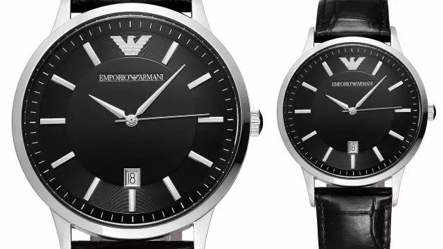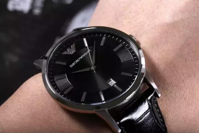 阿玛尼作为世界著名奢侈品品牌,其设计的腕表也尽显高贵气质,经典老鹰logo被高调置于12点位置,与6点钟位置的日期显示窗口遥相呼应,搭配银色大三针尽显大气,精钢表壳搭配黑色精致皮革表带。