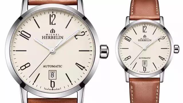 这款法国赫柏林表款给人的第一感觉是暖调简约,因其柔润舒适质感的复古棕表带搭配米色表盘,温润儒雅。浅色表盘承载简约数字刻度,搭配大气夜光三针,简约而不失风范,同时还能通过透底表背设计看到齿轮的运转。