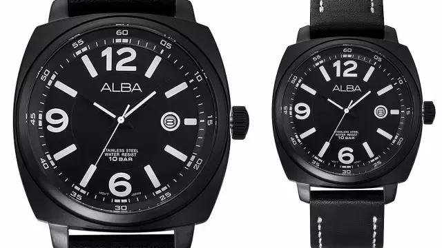 黑色方形表壳设计,同时黑色表盘搭配经典大三针,三点钟位置日期显示,9、12、6三个数字刻度夸张放大,粗犷时尚表身搭配真皮表带,搭载VJ42石英机芯,走时精准。另外配备100米防水功能。