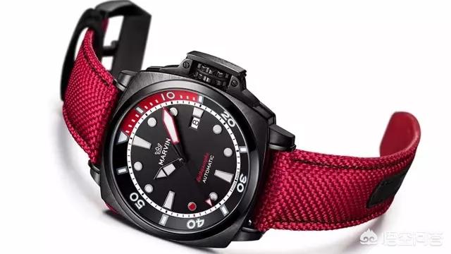 这一款魔纹莫尔顿深潜者系列的灵感来源于红海,红色的指针外圈、红色的15分钟潜水计时,颜色鲜艳,容易读取。红色的尼龙表带透气、排汗、速干,佩戴舒适。此外,还有一点红,红色的8点钟时标。这款腕表的红黑搭配,方形圆盘在造型上与传统的潜水水表有所区别,它给人眼前一亮的感觉,运动感十足。