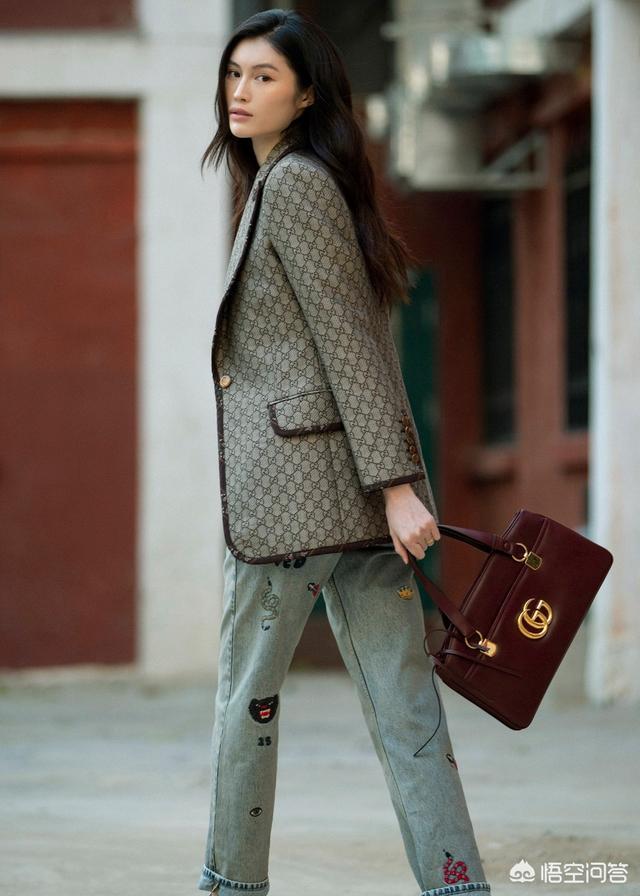Gucci西服上衣,搭配绣花牛仔裤,搭配酒红色Gucci手袋,打造摩登与怀旧情怀,展现优雅又充满个性的迷人魅力。