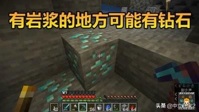 建议前往 11格挖钻石 岩浆旁边也有很多钻石