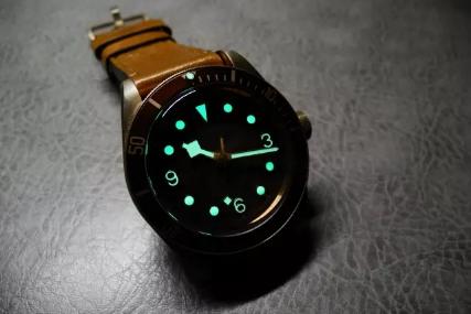 9点位置金色鱼雷针小秒盘,3点位置日历窗口显示,时标刻度都带夜光显示。金色剑形指针,专利表冠护桥,刚毅霸气。机芯搭载沛纳海自制P.9000自动机械机芯,3日长动力储存,走时状态极佳,各个方位及温度日差都在2秒内。