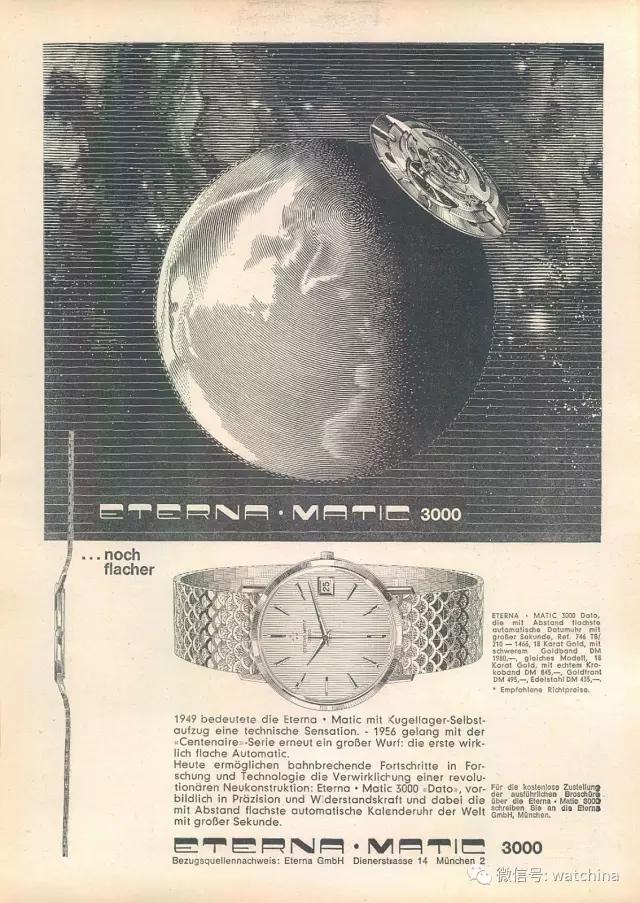 Eterna-Matic Dato3000老广告,主打自动超薄,成为一代“名芯”