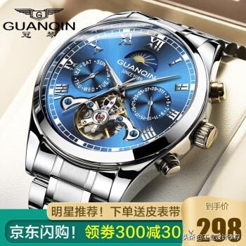 冠琴(GUANQIN)正品手表男士 瑞轮男士腕表 精钢蓝面