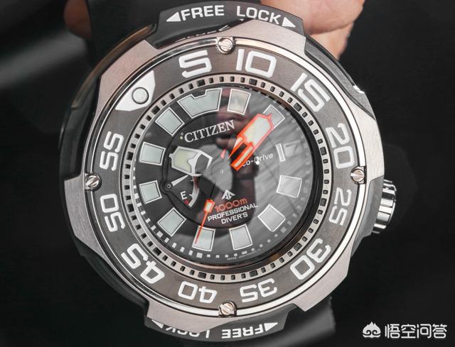 如其名所示,Citizen Eco-Drive Promaster Professional Diver 1000m 腕表的防水深度达到1,000 米。本作也配备了自动排氦阀,Citizen 宣称其完全符合饱和潜水的要求。需要在减压舱内待上一段时间的专业潜水员自然会看重这类功能,但本作的大部分用家可能都没机会发挥它的全部实力。
