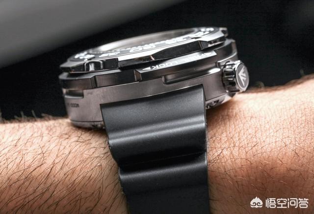 本作的表壳直径为52.5 毫米,厚21.4 毫米。它并不是那种秀丽的腕表,而与之搭配的黑色聚氨酯表带也很厚实。话虽如此,本作的无表耳结构和整体设计让它在我这样偏细的手腕上也不会显得太巨型。是的,在潜水活动之外,如果你想要看起来更俏皮一点,或是想让人注意到你的手腕,这款腕表都是个不错的选择。