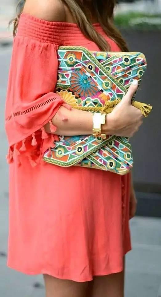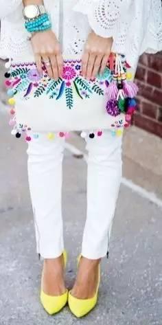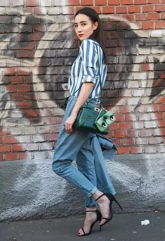 改变一下自己背包的方式,一个背在肩上,一个拿在手里,错落有致,看似很随意,其实是在凹造型,建议选择亮丽有特色的手拿包,打破一身沉闷感。