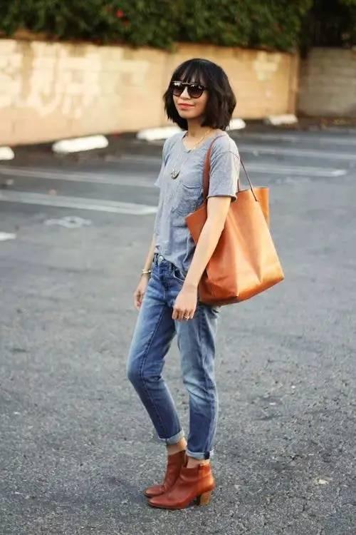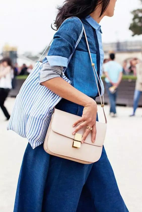 不想手上拿太多东西,或者包包略大的话,可以手拿一个包,肩背一个包,轻松省事,照样时髦。