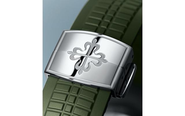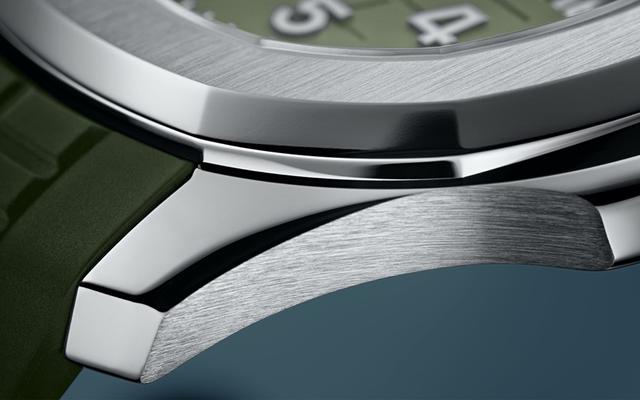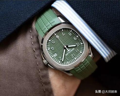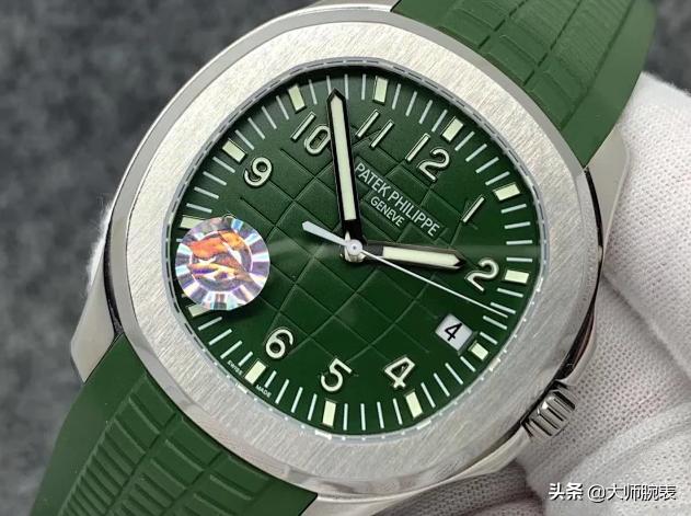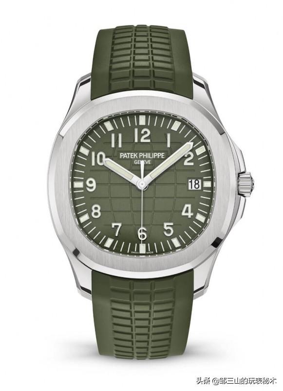 Jumbo这个名称原本是对初代Nautilus 3700的昵称,在一般的认知中,Aquanaut算是Nautilus的平价版,但由于5168G采用了跟3700相同的42mm表径,因此PP官方同样也沿用Jumbo来称呼它。而这款5168有不少地方都是在针对系列作为Nautilus平价版的这点再往上升级的,沿用Jumbo的名字是一例,过去仿佛是专属于Nautilus的蓝色面盘也已经被用在Aquanaut上了,更何况2019年的绿面,这根本就是连金鹰都还没到过的新境界。
