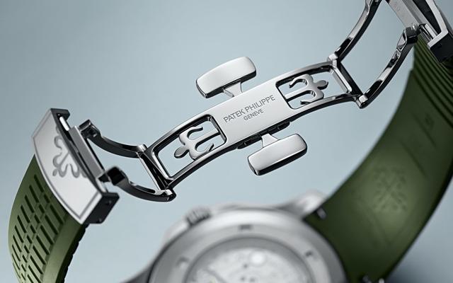 百达翡丽的Aquanaut海底探险家2019年新出了一款绿面的基本款5168G,这款基本上是延续2017年Aquanaut问世20周年所推出的渐层蓝面5168”Jumbo”而来,它与现行Aquanaut最入门的5167相较主要的差异在于表径加大(从40mm变大为42mm),当时5168蓝面被视为纪念款的特出性在于它是系列首见的白金材质搭配蓝色面盘,比起名义上更直接打出纪念款的5650,5168G即使破百万还是会被认为相对容易入手,也许是受到市场反应的鼓舞,因此PP 2019年才会打铁趁热再推出绿面新款,与渐层蓝面一起打破Aquanaut过往稍感保守的黑面或咖啡面传统,从视觉上打入更多年轻族群的心。