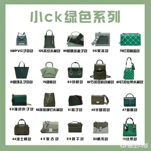 绿色包包要找到很好看的真的不多,小ck的设计师也不知道哪来的能量,能把绿色包设计得这么好看!一开始尝试的话可以从深绿色开始。