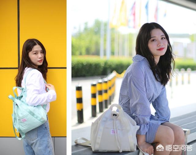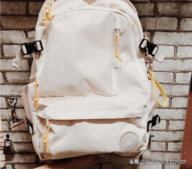 除了白色小背包,这款浅米色的背包也是学院风气息满满,而且适合比较小巧、可爱的女生。不过容量也没有很大,刚好能装下13寸的电脑。