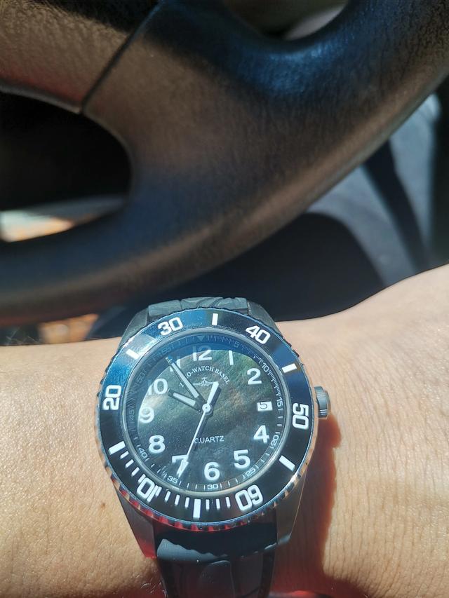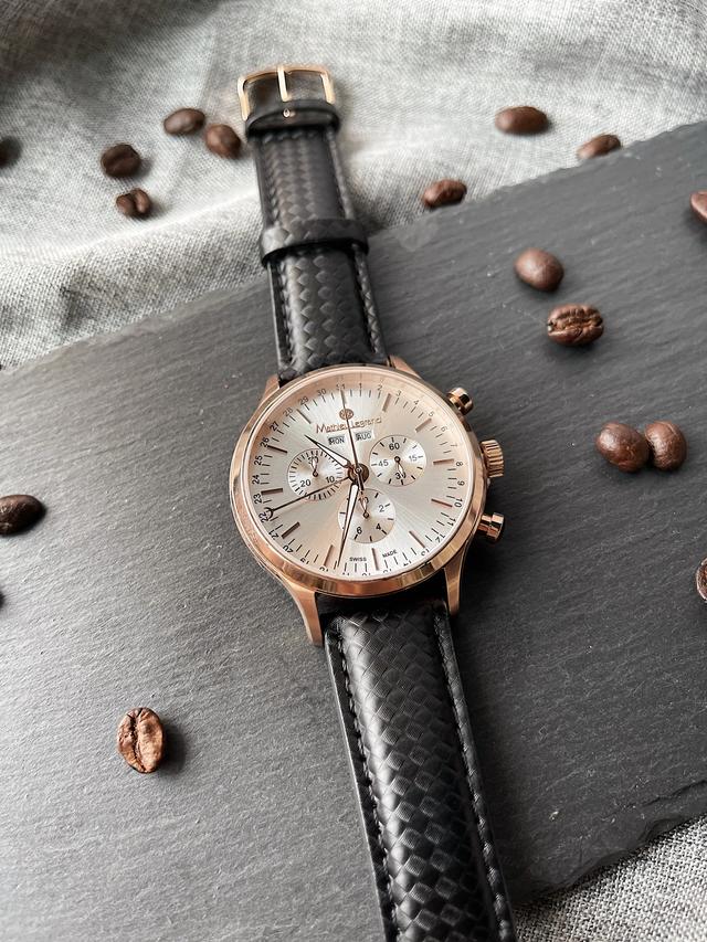 腕表用上三圈刻度,由外至内为小时刻度、分钟刻度及第二时区(GMT)的24 小时刻度,小时刻度均以数字与棒线相间,两者以幼线分钟圈隔开,中央的稻穗纹则呼应了Louis Vuitton Damier Graphite 帆布的编织纹理,细看会发现刻度圈之间也有着不同的高低层次。
