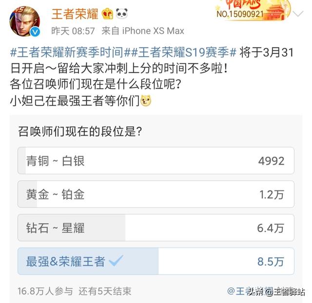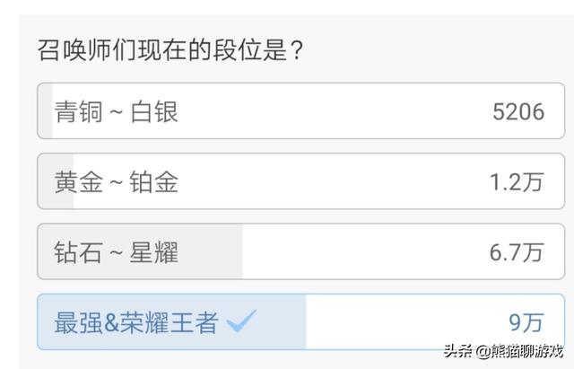 小编记得以前有一个统计说的是现在王者荣耀玩家王者的一个平均段位,大概是在黄金到铂金左右,我们可以看到这一次官方投票中钻石到星耀,还有最强王者到荣耀王者的一个玩家,数量是非常多的,当然这样的,一个投票结果只能说明两种情况,第一是那些段位高的人才会去关注官方发出的一些消息。第二个是有的网友说谎了。