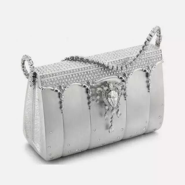 并且只生产了13个,还是挺好看的。90万元人民币。昂贵之处在于使用了2182颗钻石。除了可以作为包包使用外。还可以把包上的钻石链拆下来用作项链或手链。包包上的钻石像个王冠一样。1160万元人民币。