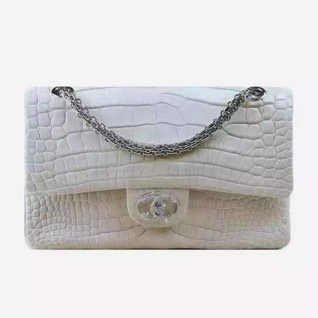 香奈儿的这款包包,由鳄鱼皮、334颗钻石、白金五金,配18K金链条长肩带制作而成